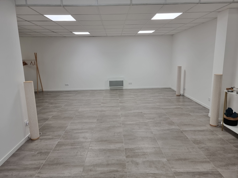Sol : dalles carrelage; faux plafond avec dalles lumineuses led; convecteurs électriques; rideau métallique
